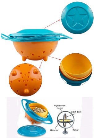 ✅Diseño Antiderrames 🌟: El recipiente interior con movimiento giroscópico puede girar 360 grados, manteniendo los alimentos dentro y evitando derrames, sin importar cómo lo muevan.